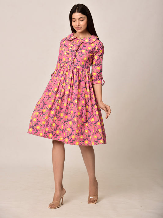 Cosmic Dream Pink Floral Cotton Dress