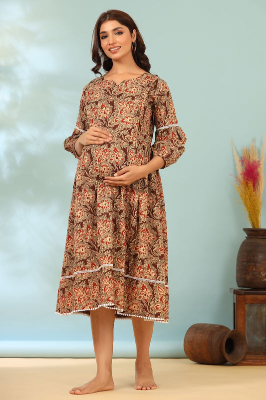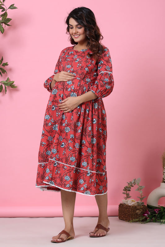 Crimson Garden Maternity & Nursing Kaftan Dress