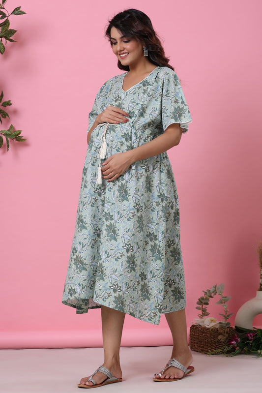 Rustic Grey Maternity & Nursing Kaftan Dress