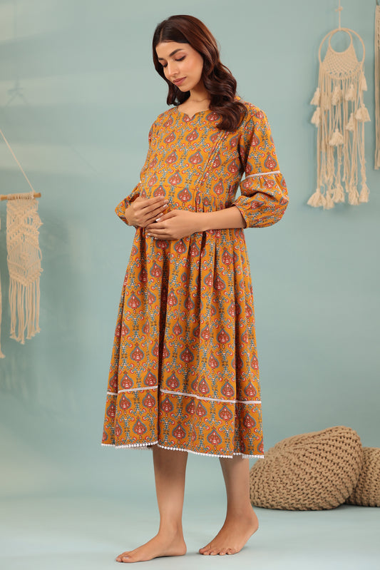 Minimalist Motif On Yellow Maternity & Nursing Dress