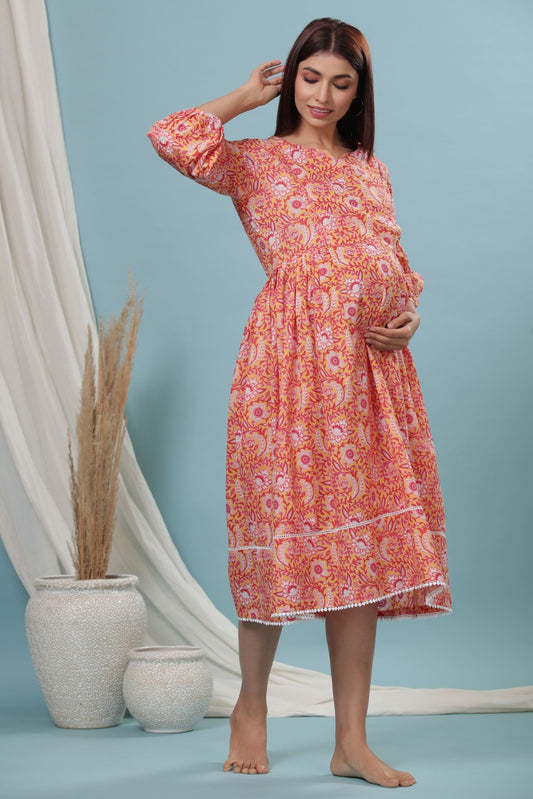 Vibrant Sunflower Maternity & Nursing Kaftan Dress