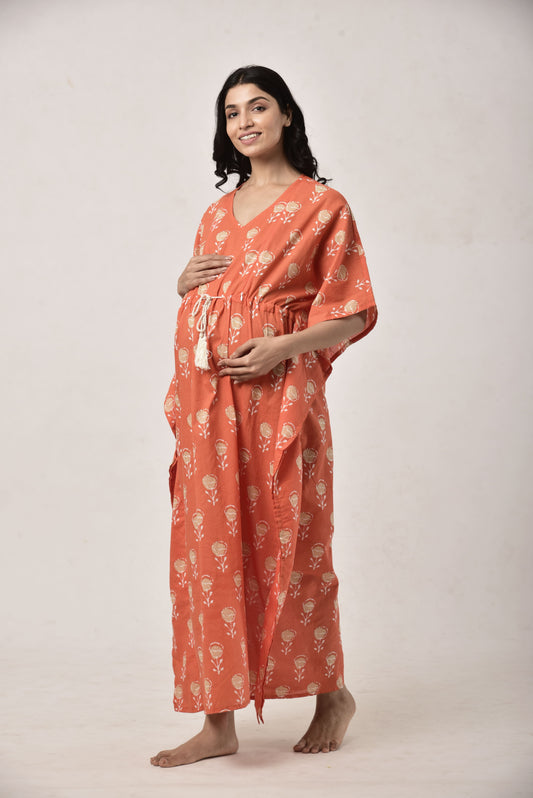 Gulmohar On Orange Maternity & Nursing Kaftan