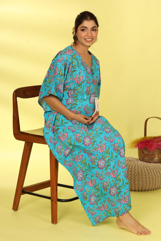 Nature's Indigo Canvas Maternity & Nursing Kaftan