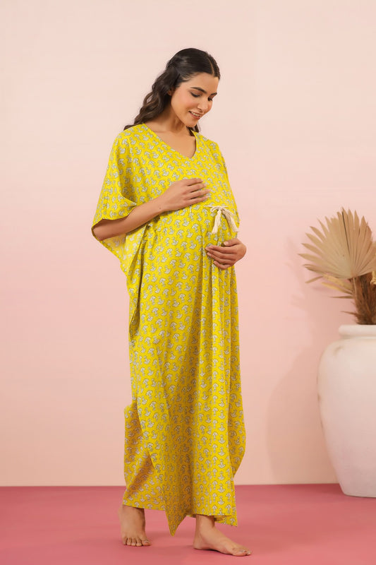 Mushrooms On Yellow Maternity & Nursing Kaftan