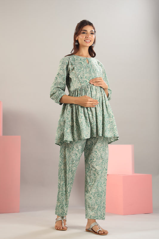 Mustard Kalamkari Maternity & Nursing Co-ord Set
