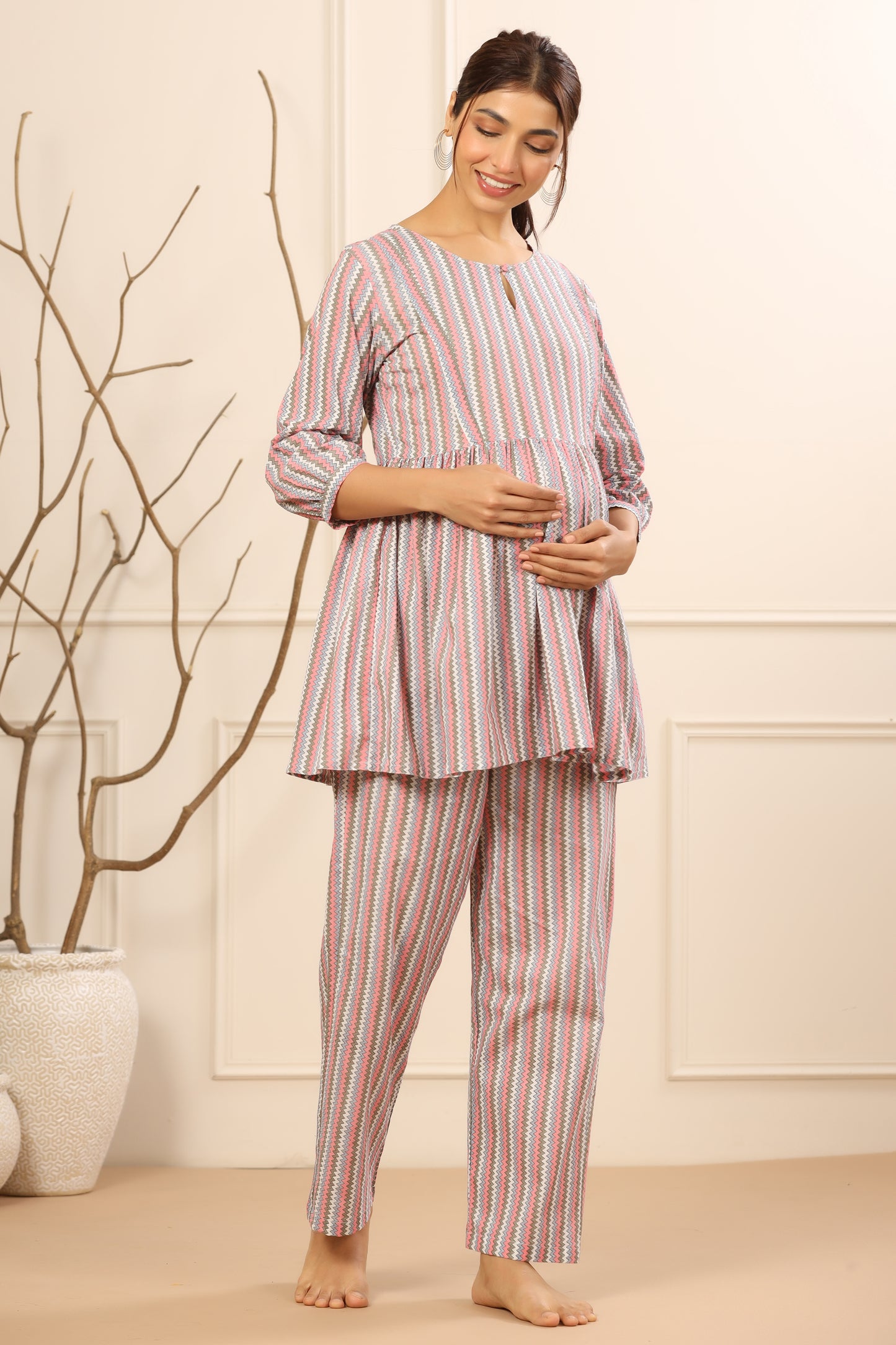Stay comfortable and stylish during your pregnancy and postpartum with our Multicolor Zig Zag Maternity & Nursing Set. With a design tailored for breastfeeding, convenience meets fashion with this set. Never sacrifice comfort for looks again!