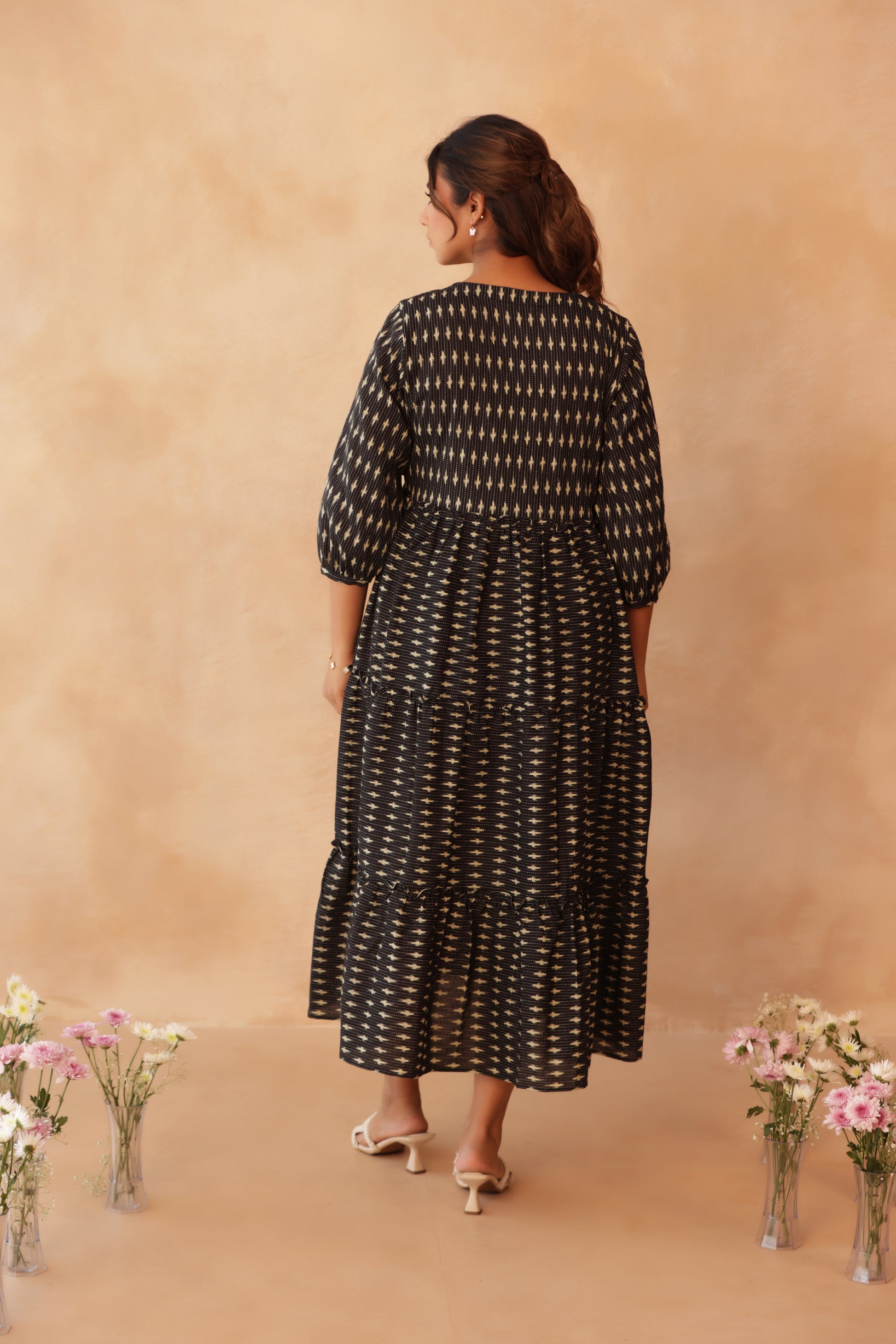 Noir Ikkat Trail Maternity & Nursing Tier Dress