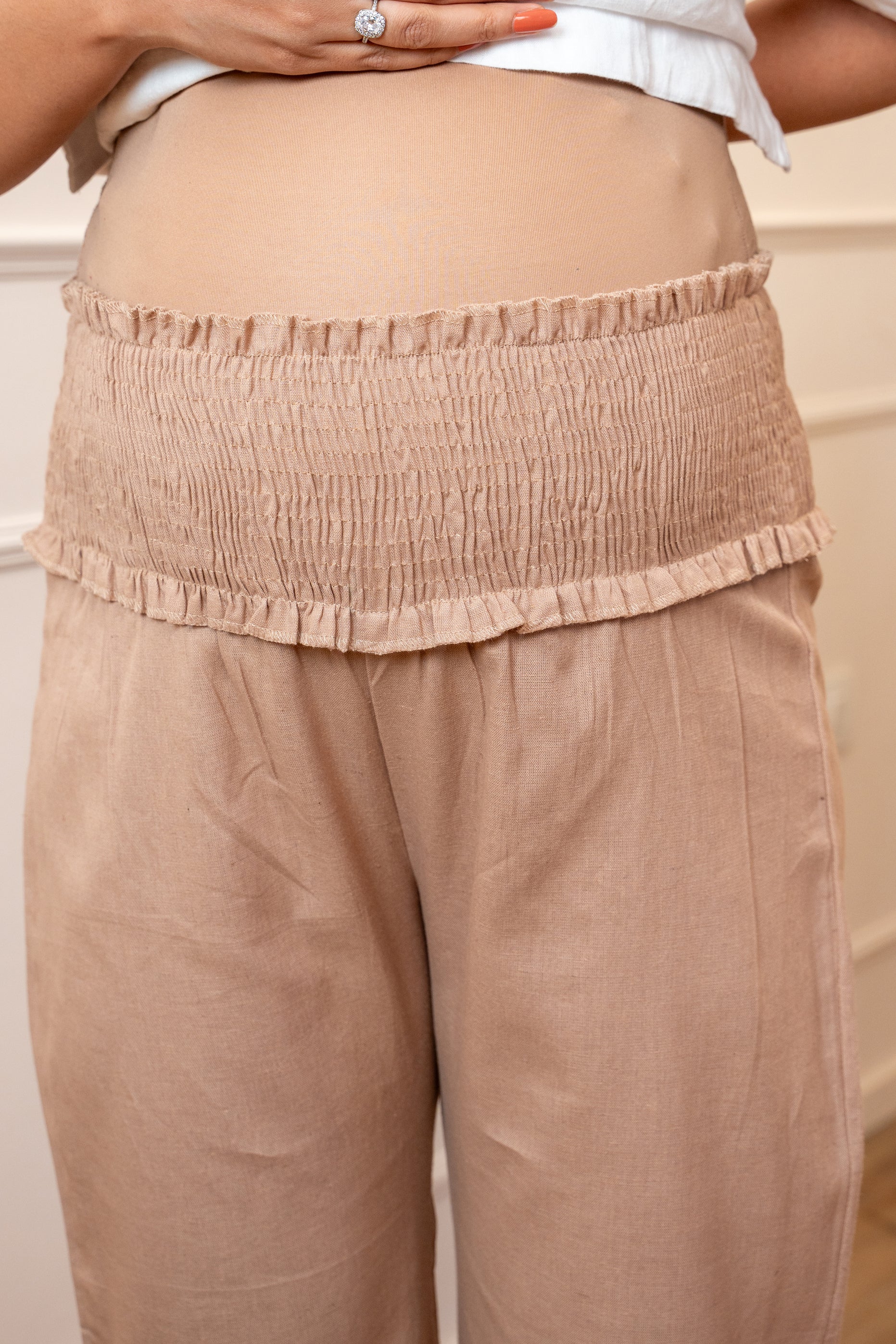 Designed for ultimate comfort through every stage of pregnancy, our Second Skin Cotton Maternity Pants are a wardrobe essential for moms-to-be. Crafted in soft, breathable cotton, these pants feature a smocked elastic waistband that gently adapts to your growing bump, offering a secure yet flexible fit.